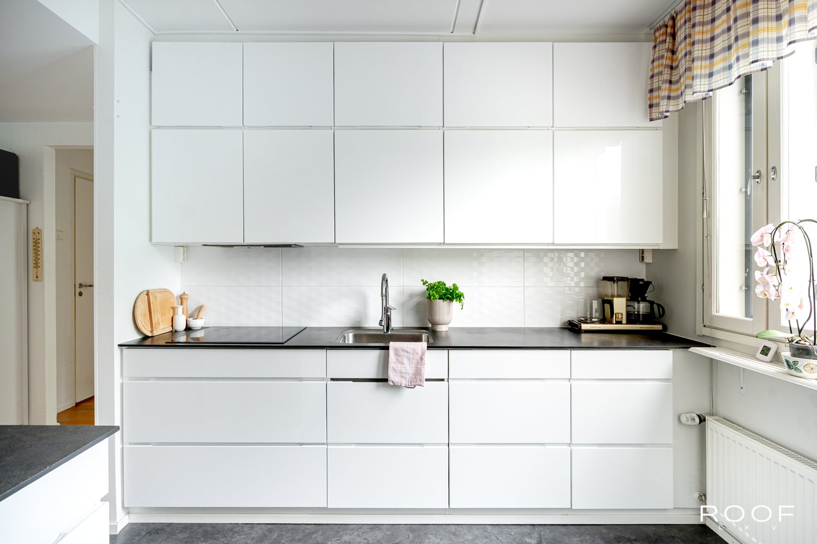 Tervetuloa tutustumaan tähän tilavaan ja viihtyisään kotiin Helsingin Tapanilassa. Tämä 93,5 neliöinen asunto tarjoaa erinomaiset puitteet perhe-elämälle. Kolme makuuhuonetta, avara olohuone ja moderni avokeittiö luovat toimivan kokonaisuuden, jossa on helppo viihtyä. Keittiö on remontoitu vuonna 2014 ja se on varustettu laadukkailla Siemensin kodinkoneilla.