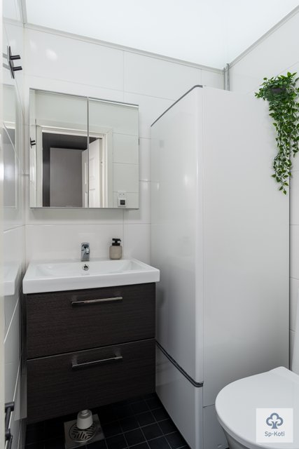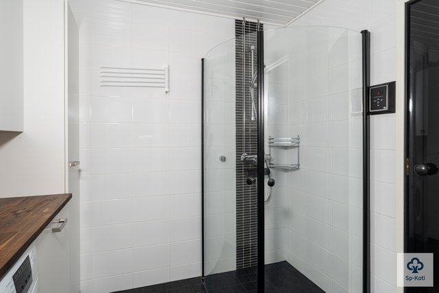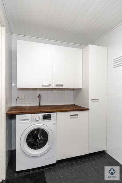 - Kuivauskaappi, pesukoneliitäntä, ja lattialämmitys