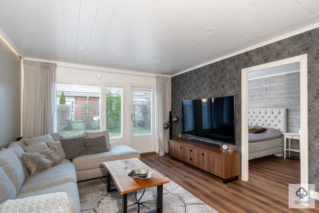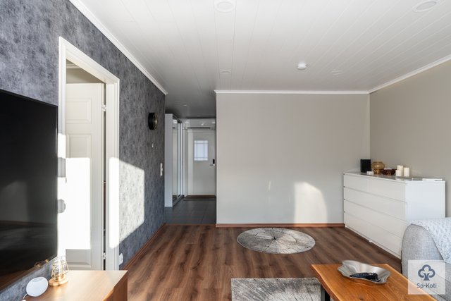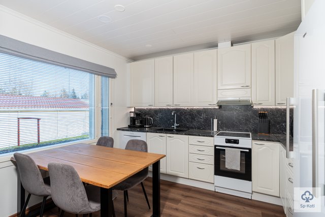 Keittiössä on kaikki tarvittavat varusteet, kuten astianpesukone ja erillinen pakastin, mikä tekee ruoanlaitosta sujuvaa. Olohuone ja makuuhuone ovat viihtyisiä ja niissä on käytetty miellyttäviä pintamateriaaleja. Kylpyhuoneessa on lattialämmitys, joka tuo mukavuutta talven kylminä aamuina.