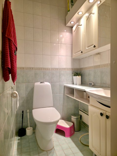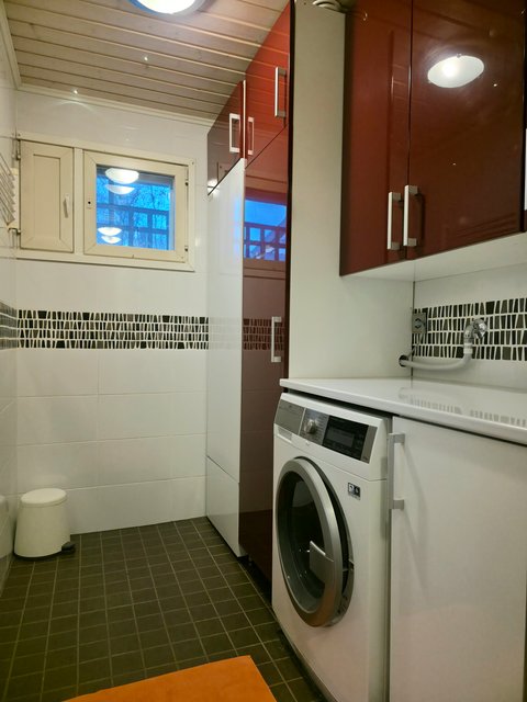 - Suihku, suihkukaappi, pesukoneliitäntä, ja lattialämmitys