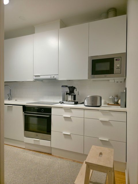 - Jääkaappi, erillinen pakastin, liesi, liesituuletin, astianpesukone, ja uuni
