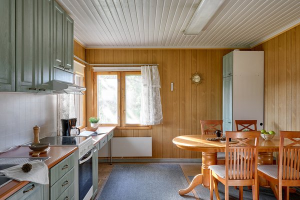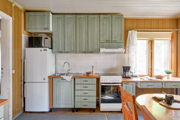 - Varustus: jääkaappi/pakastin, liesituuletin / hormi (uusittu 2020). Liesi: sähköliesi. Lattia: muovi. Seinät: osin laatoitettu