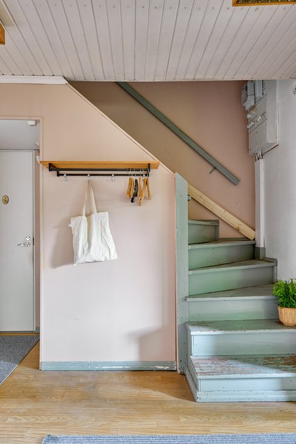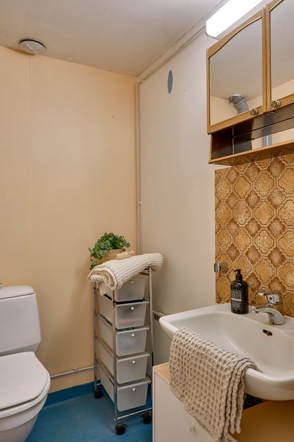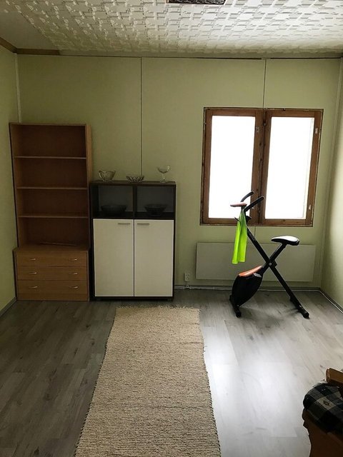 - Varustus: pesukoneliitäntä, lattialämmitys, suihku. Lattia: betoni. Seinät: puu.