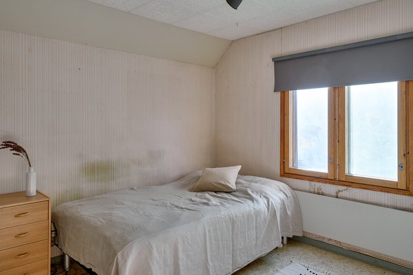 - Alakerran makuuhuoneen seinät uusittu ja lattia avattu/ suoristettu (purut kuivia, ei vesi tai home havaintoja) vanhan lautalattian päälle laitettu laminaatti. Lattia: muovi, laminaatti. Lukumäärä: 3