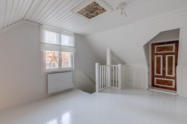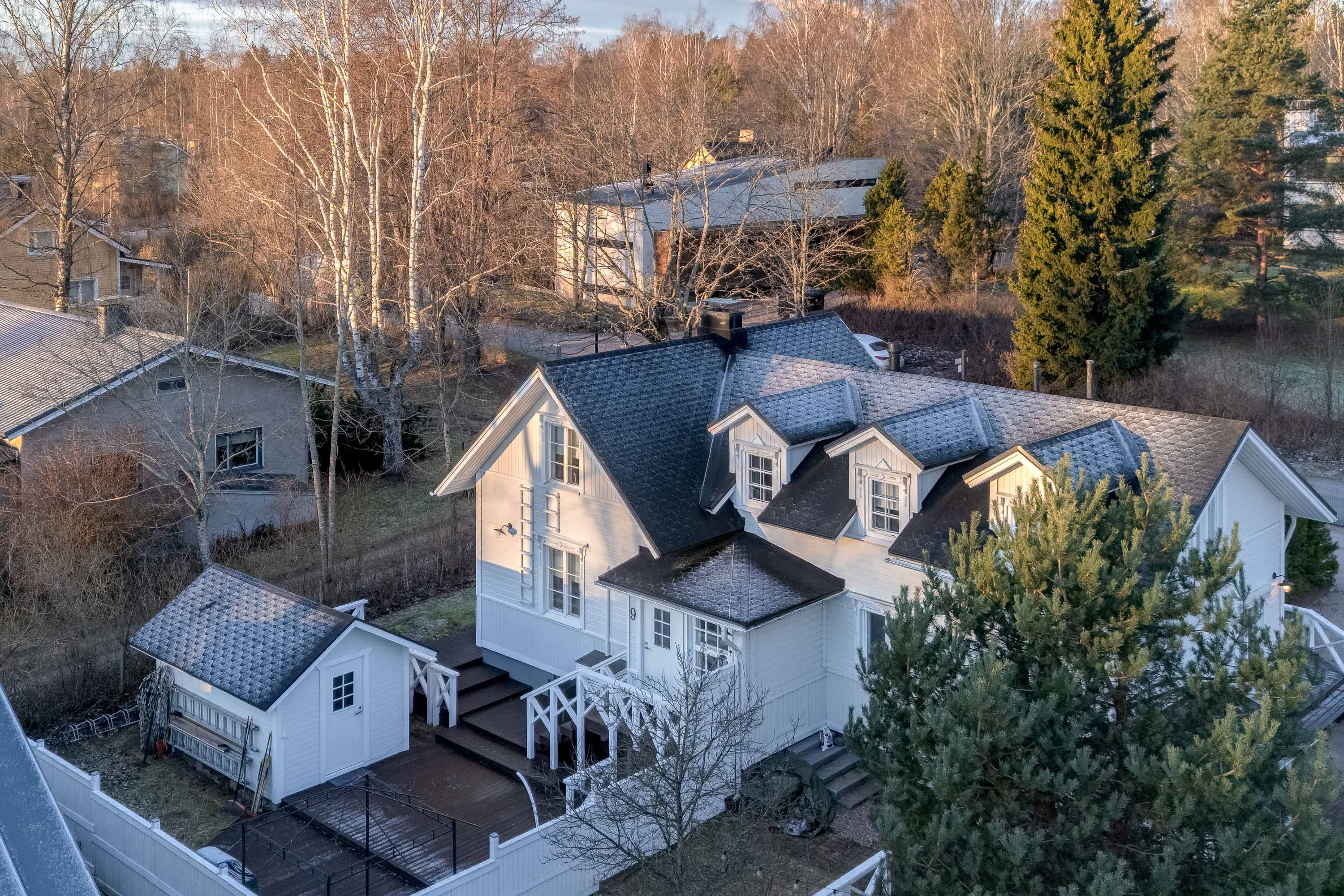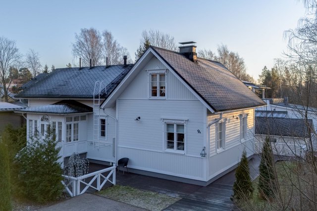Asunnon sisääntulokerroksessa on 60 m² viihtyisää asuintilaa kuisteineen. Yläkerrassa sijaitsevat kaksi makuuhuonetta ja halli, josta mahdollista luoda huonetila, kaikkiaan tilaa yhteensä 37 m². Pihapiirissä on lämmin erillinen rakennus, joka soveltuu erinomaisesti työtilaksi, ateljeeksi tai harrastekäyttöön. Käytössä on myös kellari, joka tarjoaa runsaasti säilytystilaa kausitavaroille ja puutarhakalusteille.