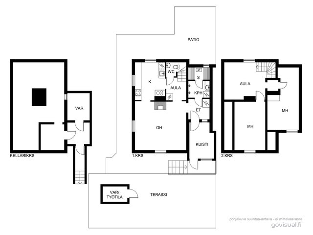 - Pihavarasto/työtilaa. Kellari, jossa tilaa pihanhoitovälineille, kausitavaroille ja pihakalusteille.