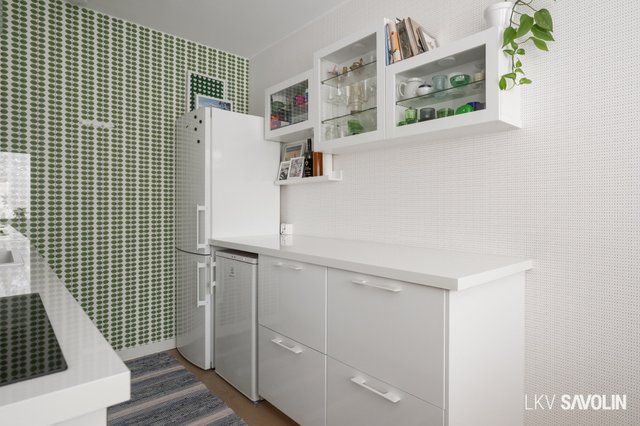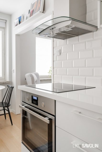 - Jääkaappipakastin, uuni, liesi, liesituuletin, ja astianpesukone