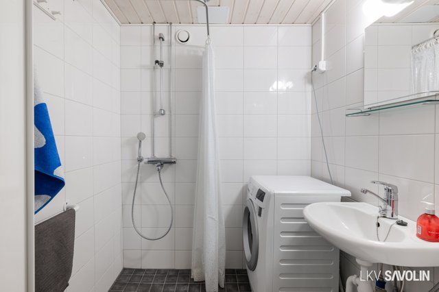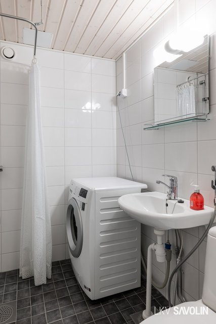 - Suihku, wc-istuin, pesukoneliitäntä, peili, pesuallas, bidee-suihku, ja lattialämmitys
