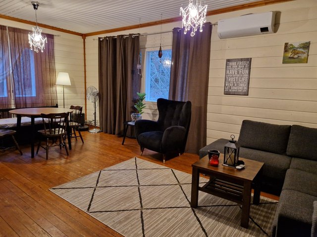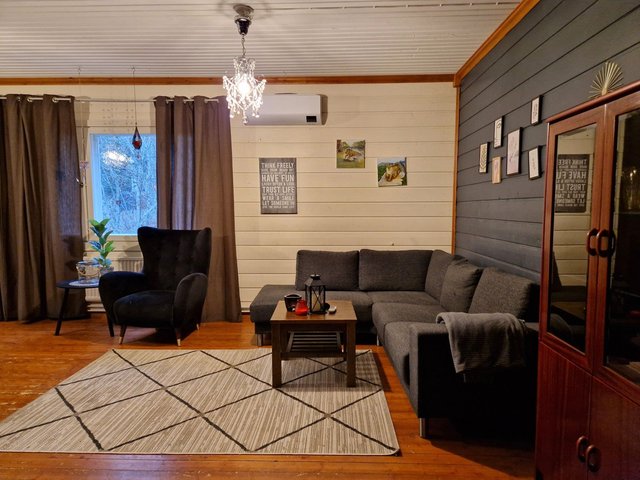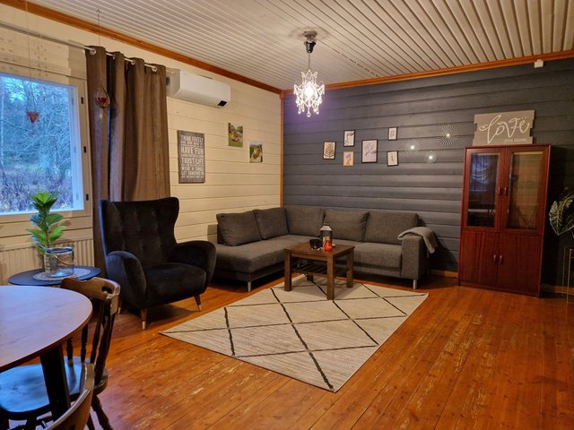 Lämmitysjärjestelmänä toimii ilmavesilämpöpumppu, joka on asennettu vuonna 2022, ja lisäksi talossa on puulämmitysmahdollisuus. Sauna kutsuu rentoutumaan puukiukaan lämmössä.