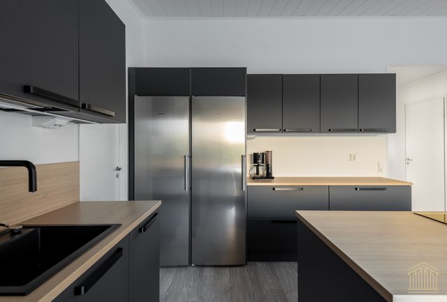 - Jääkaappi, erillinen pakastin, erillisuuni, liesituuletin, astianpesukone (integroitu), keittiösaareke, ja integroitu liesituuletin