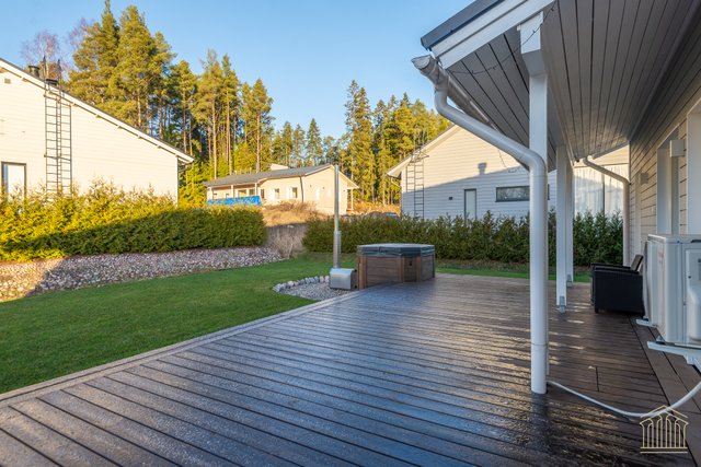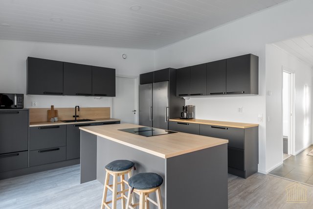 Nyt myynnissä vuonna 2022 valmistunut omakotitalokokonaisuus, jonka parhaimpia puolia ovat oma tontti, avara ja valoisa pohjaratkaisu, edulliset asumiskustannukset ja huoliteltu viimeistely. Sisään astuessa avautuu tilava eteisaula, josta aukeaa näkymä suoraan takapihalle. Avokeittiössä on panostettu työskentelytilaan ja käytännöllisyyteen. Puustellin mattakeittiö sopii täydellisestä vaaleaan vinyylilattiaan. Keittiöstä avautuu ruokailutila ja olohuone, missä arvokkuutta tuo vino sisäkatto sekä Tulikiven huoliteltu takka. Isot ikkunat avautuvat takapihalle ja oleskelutila jatkuu saumattomasti länsisuuntaiselle terassille, jossa tilaa riittää isommallekin ystäväporukalle.