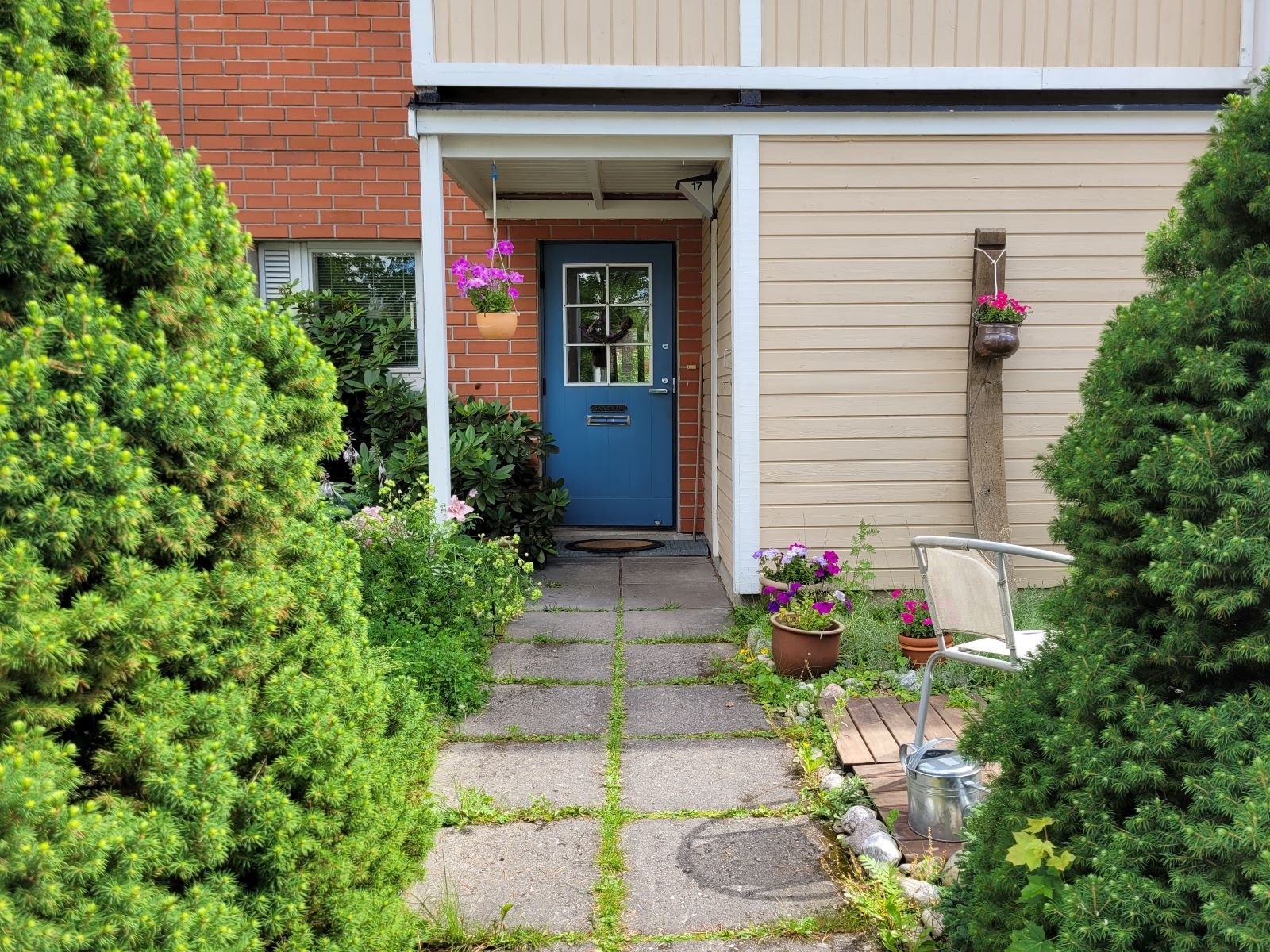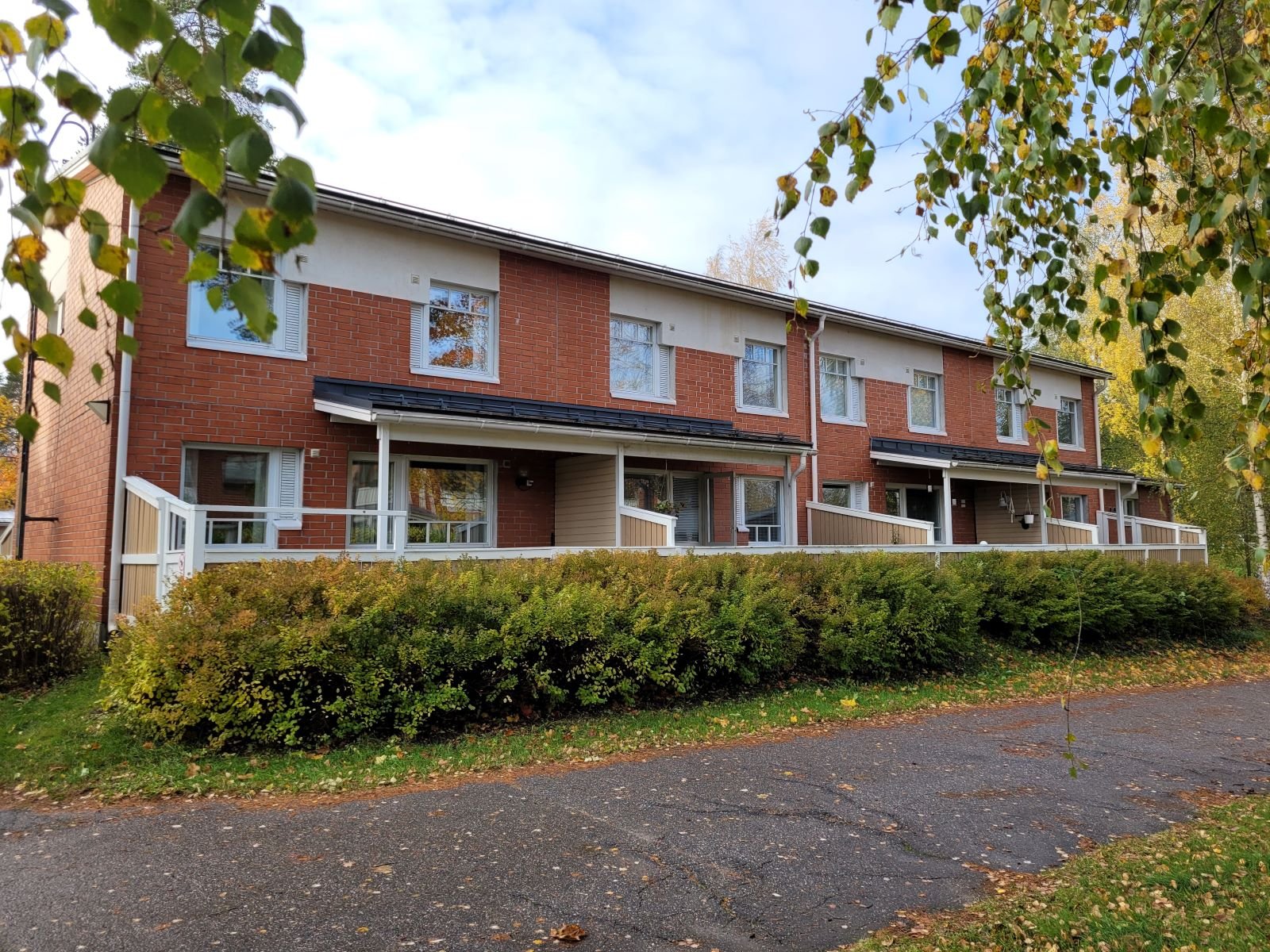 Viihtyisä rivitaloasunto kuntakeskuksen palveluiden äärellä. Alakerrassa keittiö, kodinhoitotila, olohuone ja wc sekä etupiha ja takapiha terasseineen. Yläkerrassa kaksi tilavaa makuhuonetta, pesuhuone, sauna, wc ja vaatehuone sekä lasitettu parveke vilvoitteluun ja viihtymiseen.