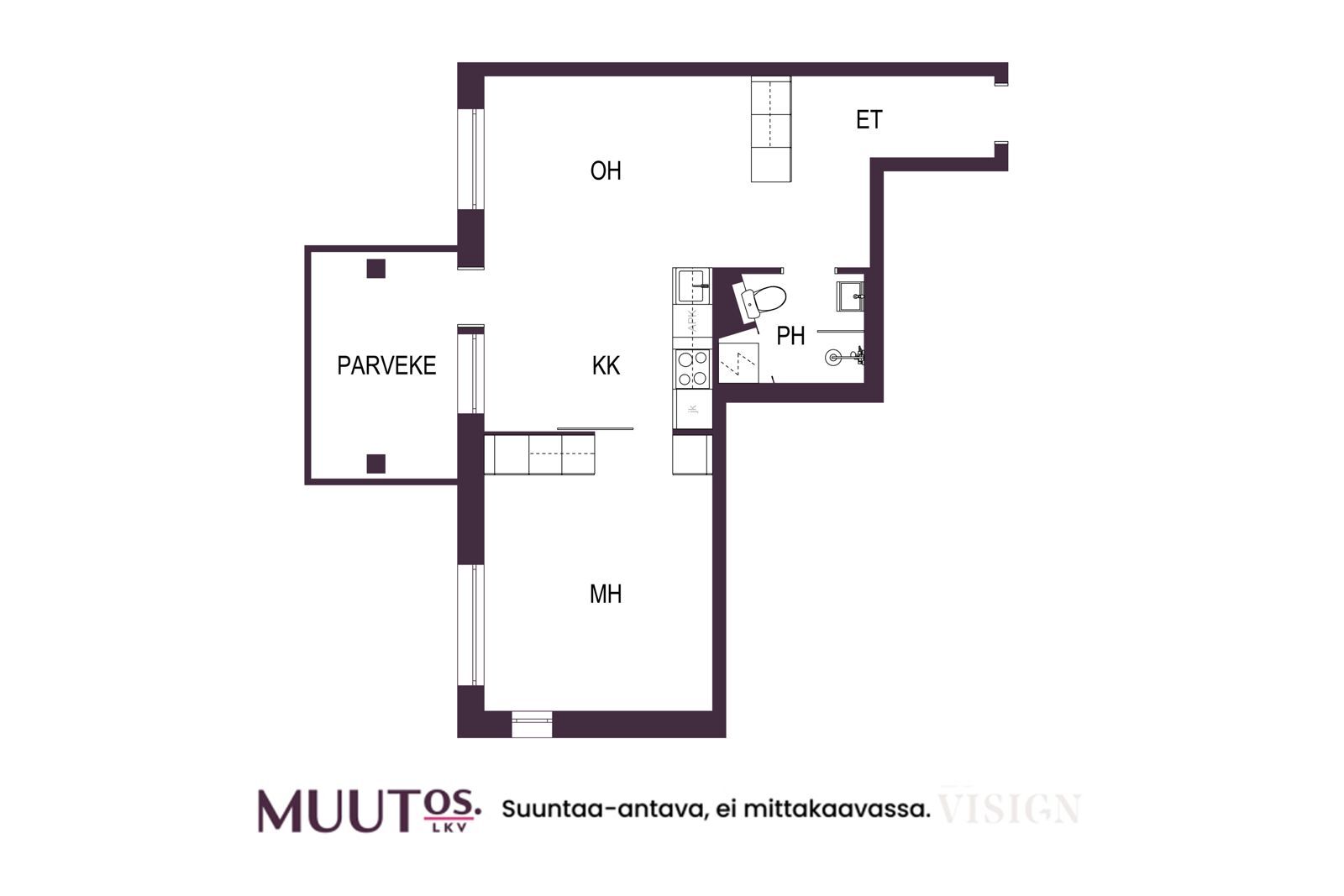 - Yhtiön huoneistojen pinta-aloja ei ole tarkistusmitattu. Mitattaessa ne saattavat olla ilmoitettua suurempia tai pienempiä. Hinta ei ole pinta-ala perusteinen. Yhtiöjärjestyksen mukainen huoneistoselitelmä: 2h+kk.