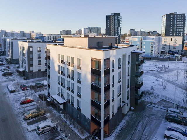 Tervetuloa tutustumaan tähän viidennen kerroksen hyvin suunniteltuun 37,5 m² yksiöön, jossa neliöt on hyödynnetty fiksusti. Aamuaurinkoon suuntautuva suuri ikkuna sekä ranskalainen parveke tuovat olohuoneen ja keittotilan yhdistelmään valoa. Sängylle on hyvä paikka makuualkovissa. Vesikiertoisella lattialämmityksellä varustettu kylpyhuone on suunniteltu arjen helppoutta ajatellen. Asuntoon kuljetaan siistin, osin uudistetun ja hyvin valaistun porraskäytävän kautta.