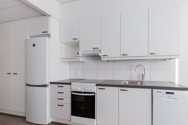 - Jääkaappipakastin, liesi, liesituuletin, ja astianpesukone