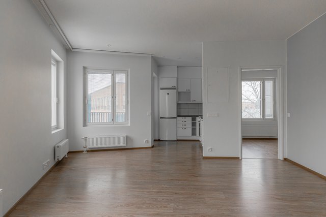 Ylimmän kerroksen muuttovalmis kaksio lasitetulla parvekkeelle