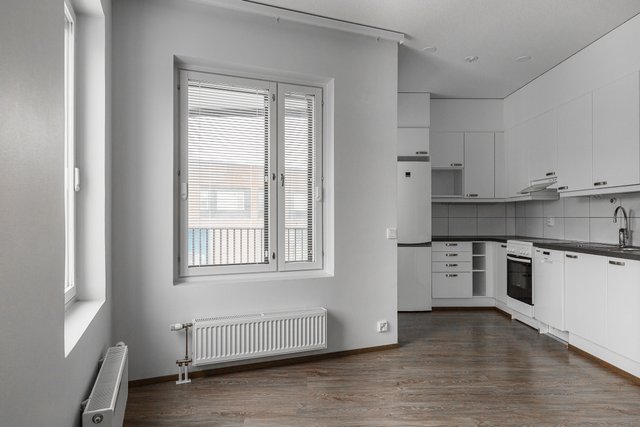 Tämän valoisan ja viihtyisän kodin "juttu" on yhtenäinen ja ilmeikäs olohuone–keittiö, joka tarjoaa erinomaiset puitteet monenlaiseen sisustamiseen ja arjen sujuvuuteen. Lasitettu kulmaparveke toimii lisähuoneena keväästä aina pitkälle syksyyn asti. Makuuhuone tarjoaa rauhaisan nukkumatilan, tarvittaessa saat sinne mahtumaan myös pienen työpisteen. Tilava kylpyhuone mahdollistaa myös pesutornin sijoittamisen sinne. Asuntoon saavut siistin, osittain uusitun ja hyvin valaistun porraskäytävän kautta.