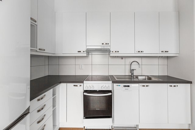 - Jääkaappipakastin, liesi, astianpesukone, ja liesituuletin