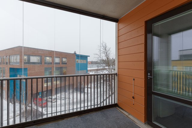 - Käynti lasitetulle kulmaparvekkeelle.