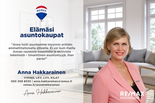 Tätä asuntoa myy Anna Hakkarainen, Yrittäjä, Kiinteistönvälittäjä LKV, KiLAT
