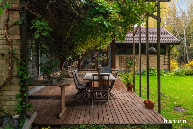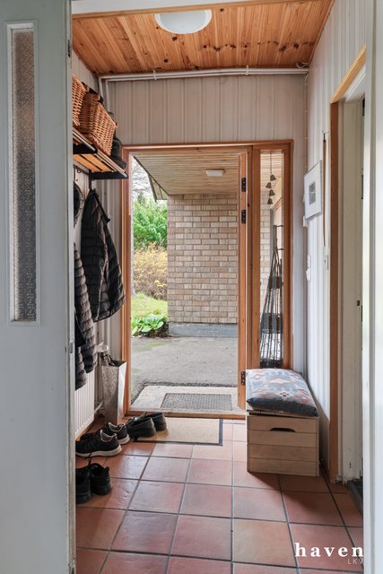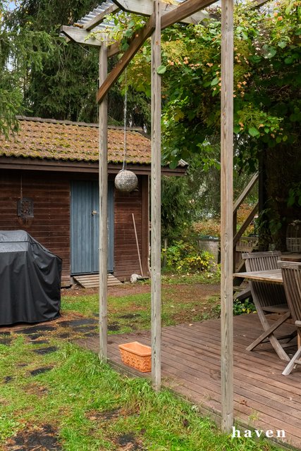 Pihalla on terassi, joka tarjoaa mukavan paikan nauttia ulkoilmasta. Varastotilaa on runsaasti, perheen harrastusvälineille.