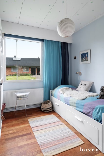 - Makuuhuoneista yhdessä on laminaatti muissa parketti. Osa makuuhuoneiden seinistä on maalattu osa tapetoitu.
