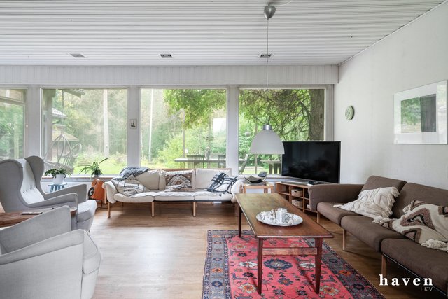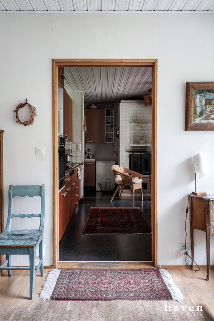 Talon sydän on tilava olohuone, jossa suuret ikkunat tulvivat valoa tilaan. Keittiö on hyvin varusteltu, ja sieltä löytyy muun muassa kaasuliesi sekä kivitasot. Asunnon pohjaratkaisu on yksikerroksinen, mikä tekee siitä käytännöllisen ja helppokulkuisen.