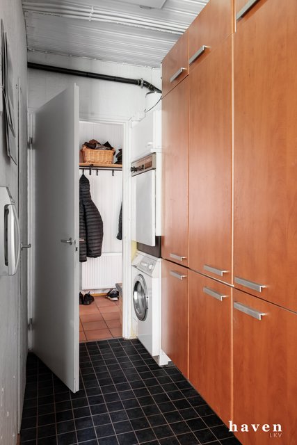 - Pesukoneliitäntä, lattiakaivo, silityspöytä/taso, pyykkikaapit, ja keskuspölynimuri
