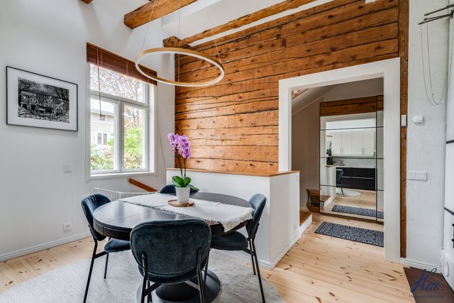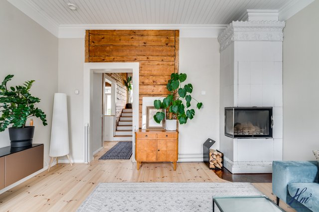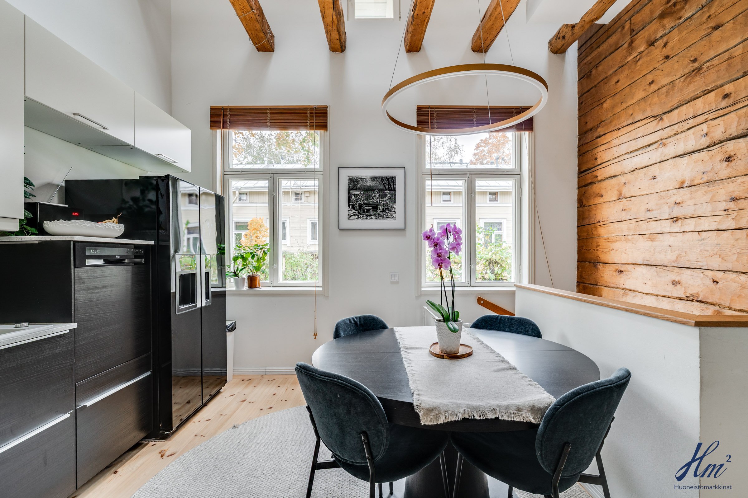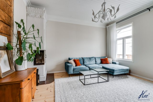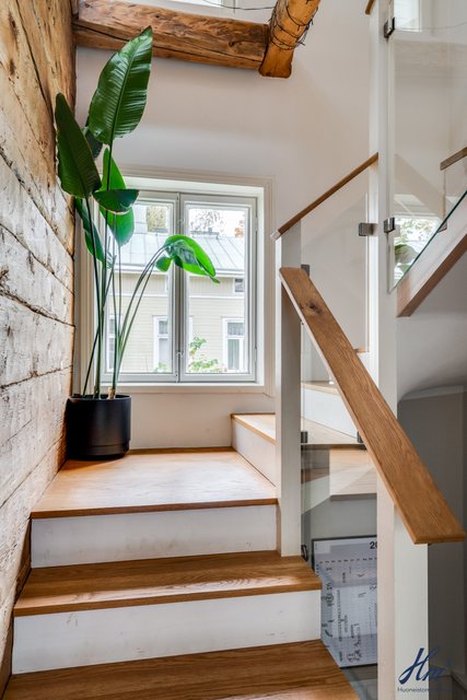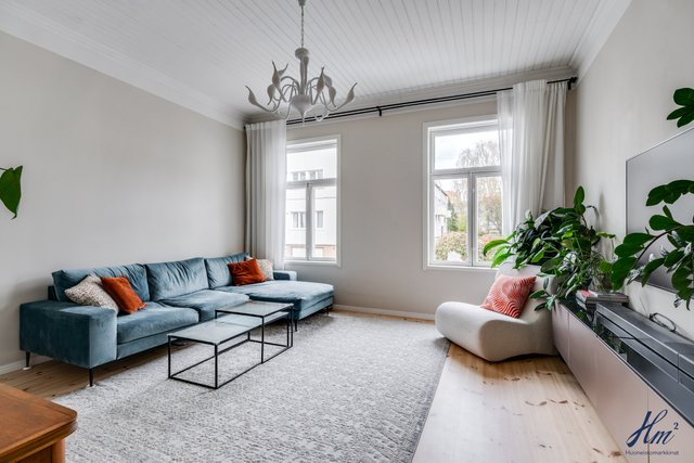 Tämä vuonna 1901 valmistunut koti tarjoaa ainutlaatuisen yhdistelmän historiaa ja modernia asumismukavuutta. Huoneisto on saneerattu kokonaisuudessaan 2014.ja asunto on lattiapinta-alaltaan n. 127 neliömetriä jakautuen kolmeen kerrokseen. Puulattiat, kauniit kaakeliuunit, korkea huonekorkeus ja upeat yksityiskohdat luovat lämpimän ja kutsuvan tunnelman.