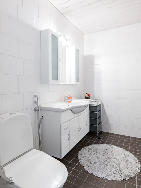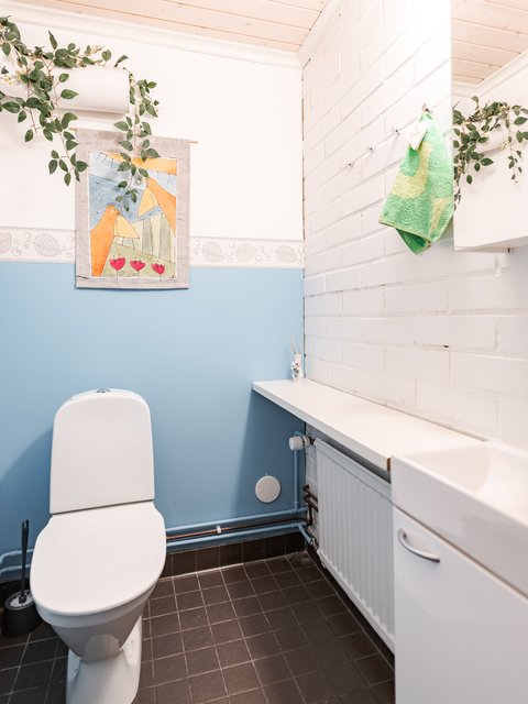 - WC:t saneerattu 2009. Yläkerran WC: Varustus: WC-istuin, bidee, allaskaappi, peilikaappi Materiaalit: Lattia- ja seinäpinnat laatoitettu Alakerran WC: Varustus: WC-istuin, allaskaappi, peilikaappi Materiaalit: Lattiapinnat laatoitettu ja seinäpinnat maalattu