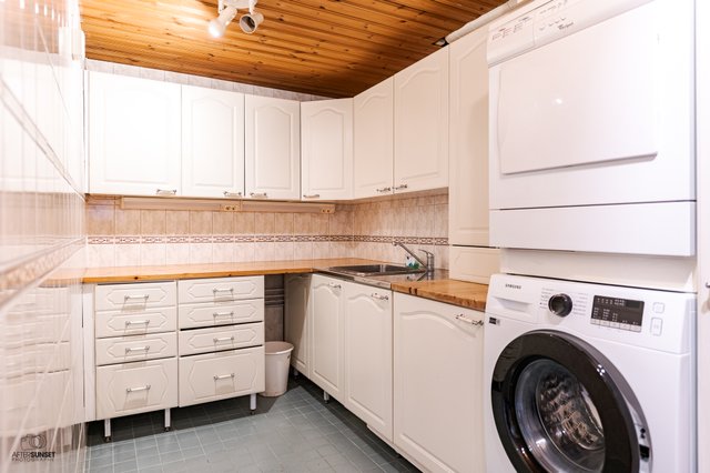 - Alakerran kaapistot, autotallin kaapistot, ruohonleikkuri ja puutarhahoitovälineet, pakastearkku, sähkögrilli (Muurikka), kiinteät kaapistot, kiinteät valaisimet, verhokiskot, sälekaihtimet ja pyykinpesutorni. Polttopuut kuuluvat kauppaan