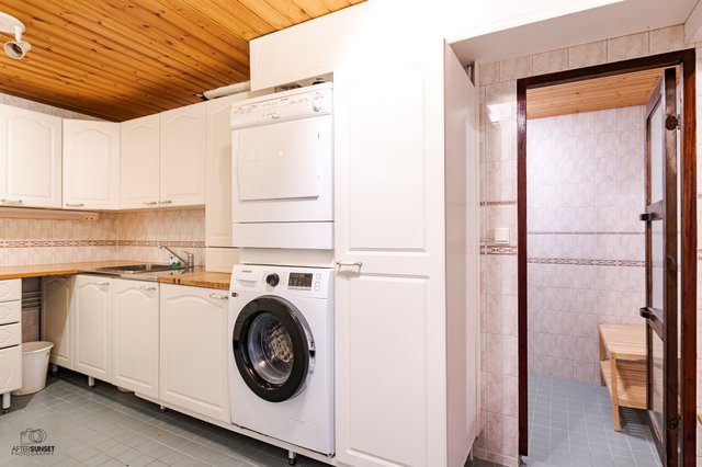 - Varustus: Rosteripesuallas, pesukoneliitäntä (pesutorni), kiinteät kaapistot ja kiinteät valaisimet. Materiaalit: Lattia- ja seinäpinnat laatoitettu.