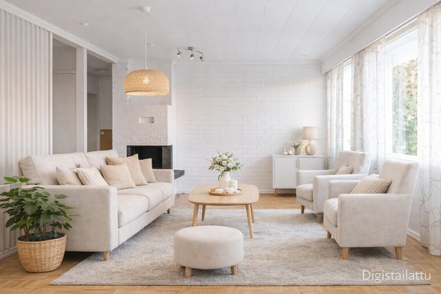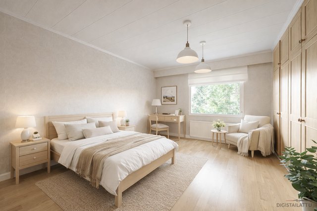 Lämmitysmuotona toimii kaukolämpö, ja tunnelmaa sekä lisälämpöä tuovat kaksi takkaa. Talon koko ja rakenne antavat loistavat lähtökohdat remontointiin ja nykyaikaistamiseen – tästä saat rakennettua juuri omannäköisesi kodin vuosiksi eteenpäin.