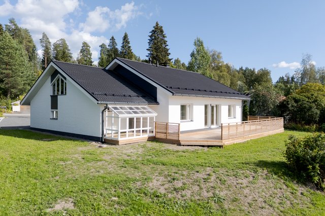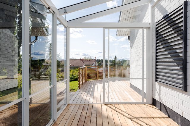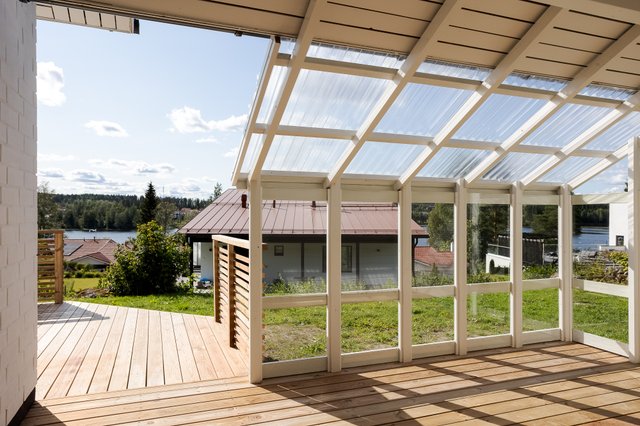 Autokatoksessa on voimavirta sähköautojen latausta ajatellen. Toinen voimavirtapistoke löytyy myös takaterassin katetusta osasta, mahdollistaen esimerkiksi ulkoporealtaan asentamisen. Talon toisesta päädystä löytyy viherhuone, jossa viihtyy sateenkin sattuessa varhaisesta keväästä pitkälle syksyyn.