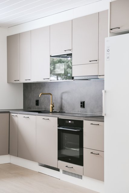 - Jääkaappi, erillinen pakastin, uuni, liesi, liesituuletin, ja astianpesukone