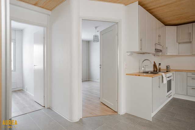 Tervetuloa tutustumaan tyylikkääseen, kauttaaltaan vuonna 2025 peruskorjattuun kahden makuuhuoneen huoneistoon Myllyojalla. Remontissa kodista saatu todella toimiva kokonaisuus, jonka yhteydessä uusittu myös huoneiston lvi ja sähköjärjestelmät. Toisen kerroksen läpitalon huoneisto tarjoaa harkittuja ratkaisuja ja korkeatasoista viimeistelyä, jossa laadukas remonttijälki näkyy jokaisessa yksityiskohdassa. Kolmion selkeä pohjaratkaisu, moderni keittiö sekä tyylikäs kylpyhuone luovat kodin, joka vastaa vaativankin asujan toiveisiin.
