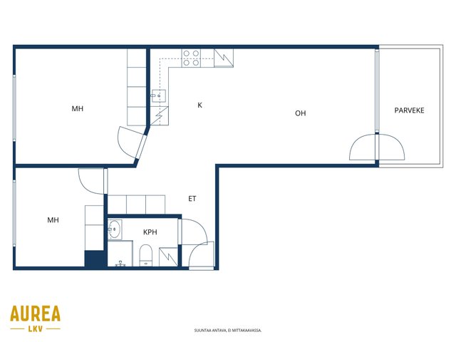 - Ei tarkistusmitattu. Pinta-alat saattavat tämän ikäisissä kohteissa (yhtiö rekisteröity ennen 01.01.1992) poiketa olennaisestikin asuinrakennusten nykyisten mittaustapojen ja standardien (SFS 5139) mukaan laskettavasta asuintilojen pinta-alasta. Pinta-ala voi siis olla edellä mainittua pienempi tai suurempi.