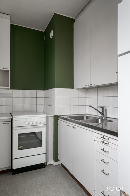 - Kompakti ja toimiva keittiö, jossa on vaaleat kaapistot ja säilytystila ylä- ja alakaapeissa. Työtasot ovat helppohoitoista laminaattia ja välitila on laatoitettu. Keittiössä on kaasuliesi uunilla, jääkaappipakastin. Allas ja tiskipöytä ovat ruostumatonta terästä. Ikkuna tuo keittiöön luonnonvaloa ja lisää viihtyisyyttä. Keittiö soveltuu hyvin arjen käyttöön sellaisenaan tai tarjoaa mahdollisuuden päivittää ilme omien tarpeiden mukaan.