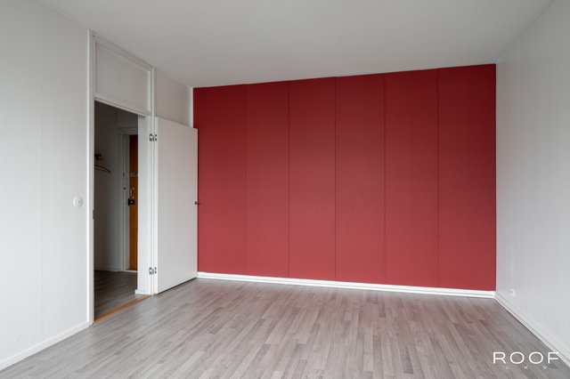 - Avara ja helposti sisustettava olohuone, johon suuri ikkuna tuo runsaasti luonnonvaloa. Vaalea lattia ja selkeät pinnat luovat neutraalin pohjan eri sisustusratkaisuille, ja korostusseinä tuo tilaan ilmettä. Pohjaratkaisu mahdollistaa monipuolisen kalustamisen arjen ja vapaa-ajan tarpeisiin.