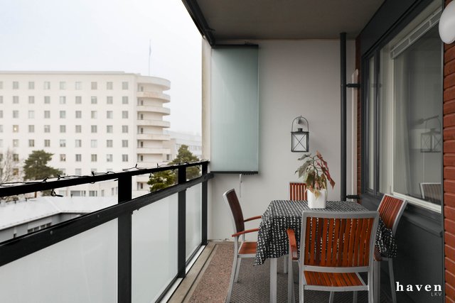 - Asunnossa oma sauna, koneellinen jäähdytys, lasitettu kookas parveke, kahdeksas kerros josta hyvät näköalat kattojen yli luoteeseen