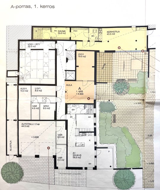 - Kaapistot, kellarikomero, lastenvaunu varasto ja lämmin ulkovarasto
