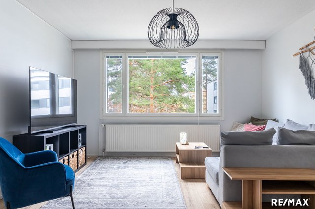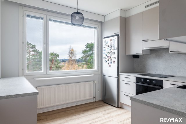 Tämä ihana ylimmän kerroksen huoneisto on remontoitu täysin ja tyylillä. Tähän kotiin voit muuttaa suoraan sisään ja vain nauttia asumisesta. Pohjaratkaisu on toimiva, kaikki huoneet ovat tilavia ja säilytystilaa on mukavasti niin kaapistojen kuin vaatehuoneen muodossa. Eteinen on mukavan väljä, ja siitä on käynti kaikkiin huoneiston tiloihin. Parasta on ylimmän kerroksen rauha sekä luontonäkymät ikkunoista.