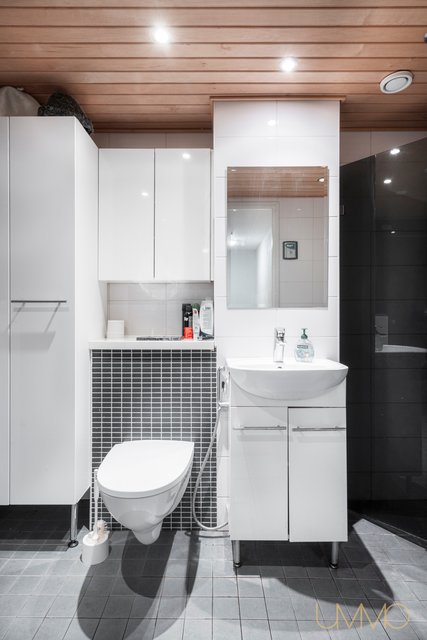 - Pesukoneliitäntä, suihku, wc-istuin, pesuallas, ja peili