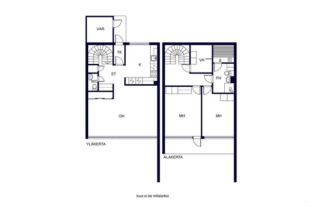 - Ei tarkistusmitattu. Pinta-alat saattavat tämän ikäisissä kohteissa (yhtiö rekisteröity ennen 01.01.1992) poiketa olennaisestikin asuinrakennusten nykyisten mittaustapojen ja standardien (SFS 5139) mukaan laskettavasta asuintilojen pinta-alasta. Pinta-ala voi siis olla edellä mainittua pienempi tai suurempi.