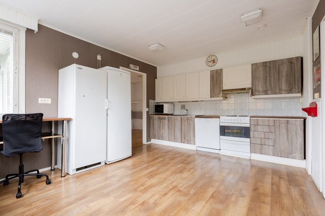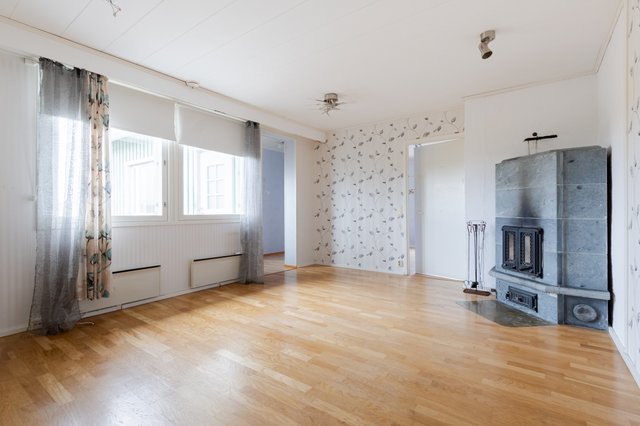 Asunto koostuu viidestä makuuhuoneesta, keittiöstä, kodinhoitohuoneesta, pesuhuoneesta, saunasta sekä olohuoneesta. Talon sydän on tilava olohuone, jossa on varaava takka, joka luo lämpöä ja tunnelmaa kylminä talvi-iltoina. Tästä talosta saat itsellesi pienellä remontilla ihastuttavan kodin.