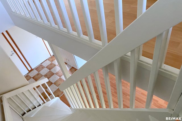 - Aula (yläkerta): kiinteät kaapistot, käynti parvekkeelle. Eteinen: kiinteät kaapistot. Portaat maalattu 2024. Seinät maali. Laattalattia. Tuulikaappi: patteri. Seinät maali. Laattalattia.