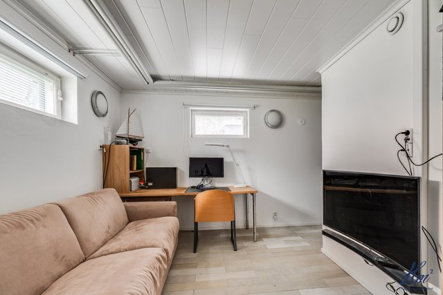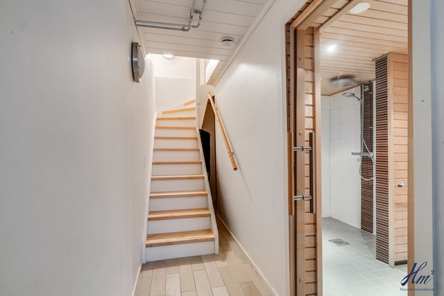 Itse talossa on selkeä ja toimiva kolmen kerroksen pohjaratkaisu. Yläkerrassa sijaitsee kolme makuuhuonetta, kaksi vaatehuonetta sekä wc/kylpyhuone, jotka tarjoavat sujuvat puitteet perheen arkeen. Keskikerros on kodin sydän, jossa ruokailutila, keittiö ja tunnelmallinen olohuone takkoineen muodostavat viihtyisän kokonaisuuden. Lisäksi kerroksessa on wc, eteinen ja kuisti. Alakerrasta löytyvät kylpyhuone ja sauna, askartelutila, tekninen tila, wc sekä runsaasti varastotilaa.