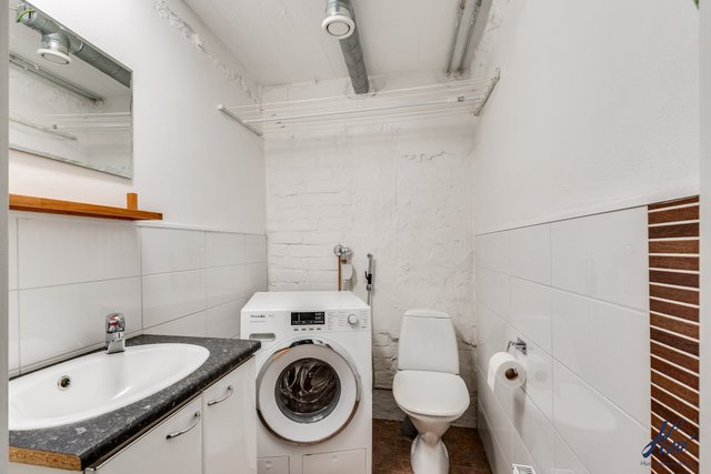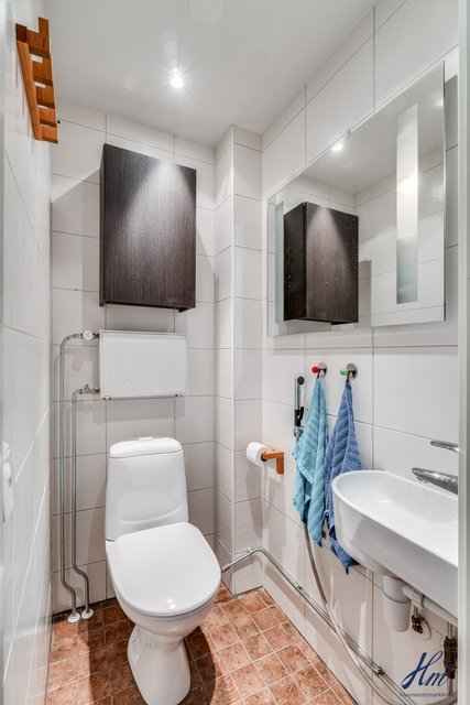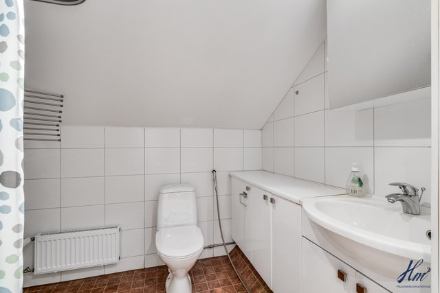 - Wc:t kaikissa kerroksissa. Keskikerroksessa erillinen wc: Wc-istuin, bidee-suihku, pesuallas, peili. Alakerrassa erillinen wc: Wc-istuin, bidee-suihku, pesuallas, allaskaappi, peili, pesukoneliitäntä.