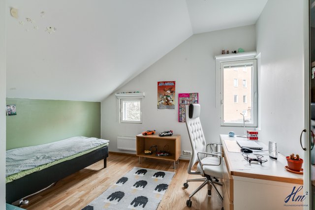 - Makuuhuoneita kolme kappaletta yläkerrassa. Tammiparketit.