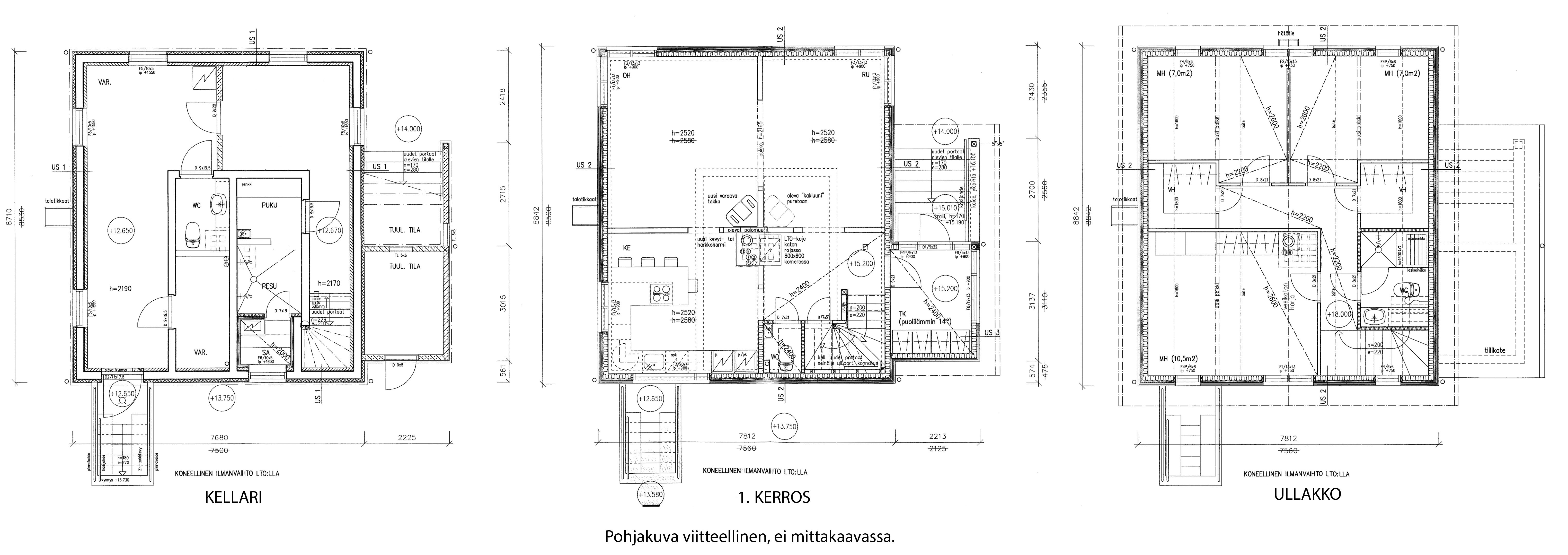 - Kellarikerros betoni / harkko. 1 ja 2 krs puurunkoinen ja lautaverhoiltu.